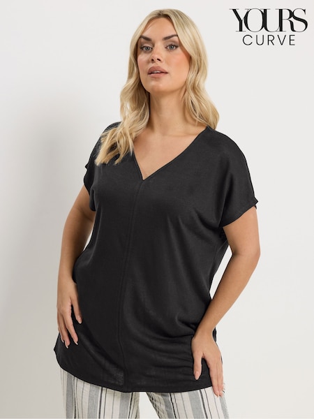 Yours Curve Black Extra Wide Fit Faux Leather Runner Trainers