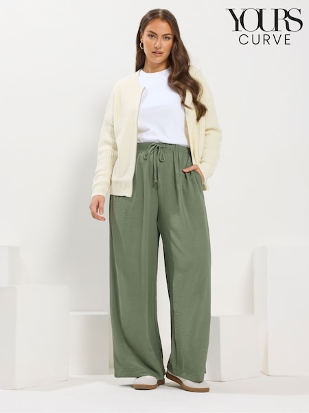 Yours Curve Green Washed Twill Wide Leg Trousers
