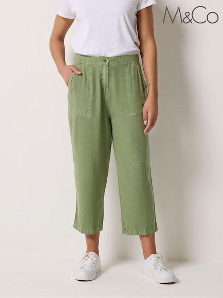 PixieGirl Green Self Belted Wide Leg Crop Trousers