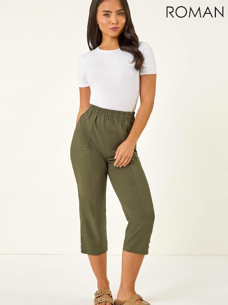 Roman Green Petite Stripe Cropped Wide Leg Trousers