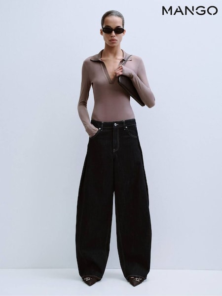 Mango Black Mid-Rise Rinse-Wash Balloon Jeans