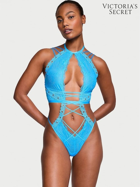 Victoria's Secret Capri Blue High Neck Eyelet Bodysuit