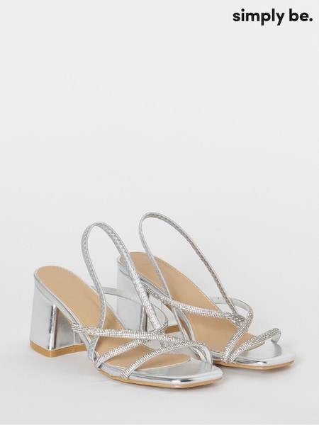 Simply Be Silver Extra Wide Fit Strappy Low Block Heels Sandals