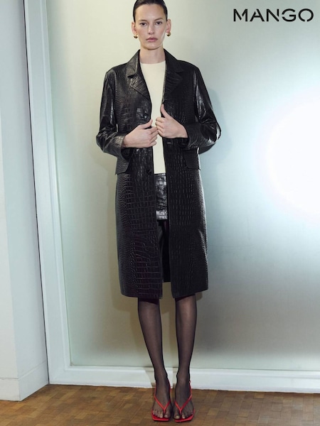 Mango Black Croc Effect Leather Coat