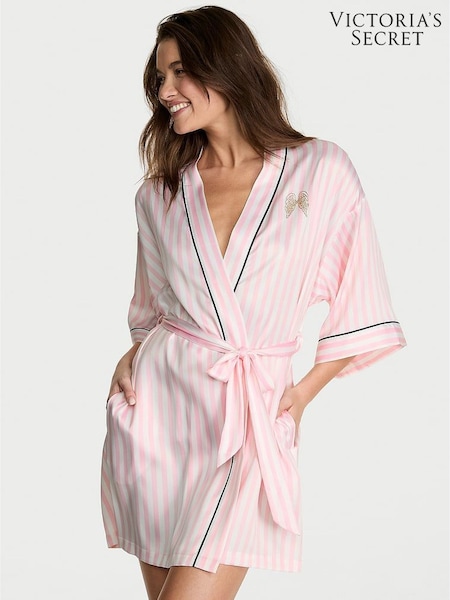 Victoria's Secret Pretty Blossom Iconic Stripe Satin Short Robe