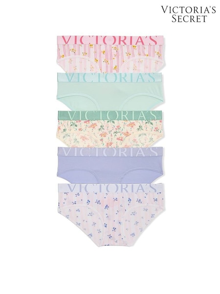 Victoria's Secret Yellow/White/Purple/Blue Hipster Exploded Logo Knickers 5 Pack