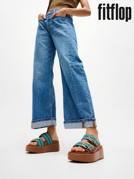 FitFlop Brown Gen-FF Max Buckle Stripe Webbing Two Bar Slides