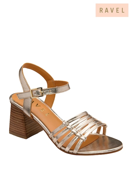 Ravel Gold Knotted Front T Bar Block Heel Leather Sandals