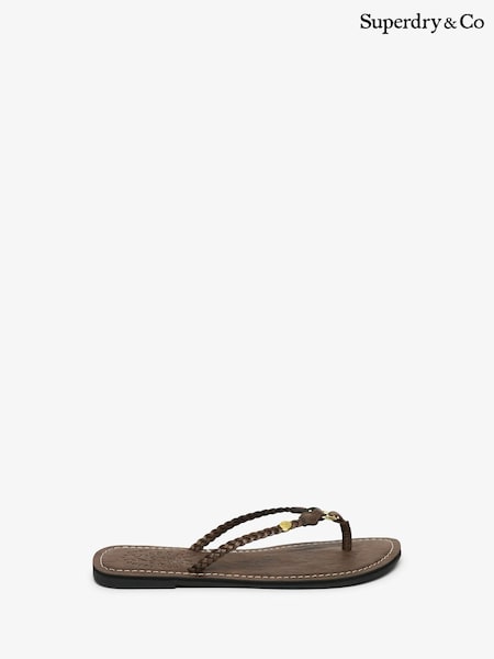 Superdry Brown Faux Leather Braided Flip Flops