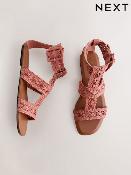 Coral Pink Forever Comfort® Raffia Gladiators Sandals