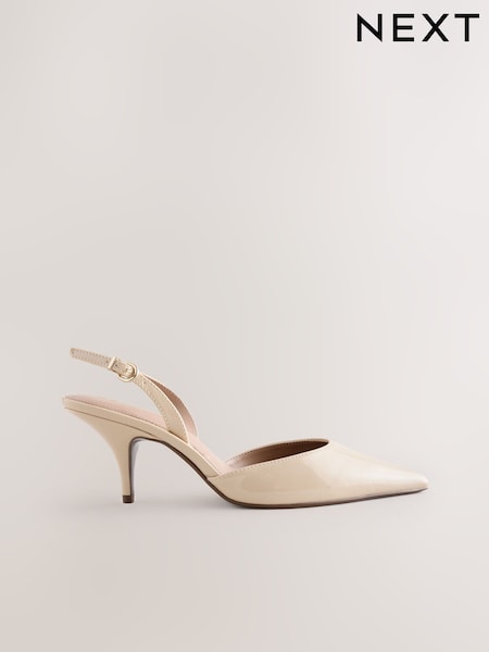 Nude Patent Forever Comfort® Pointed Toe Curvy Slingback Heels