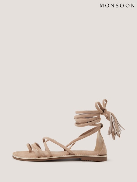 Monsoon Natural Gia Tassel Strap Suede Sandals