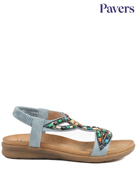 Pavers Blue Elasticated Embellished Slingback Sandals