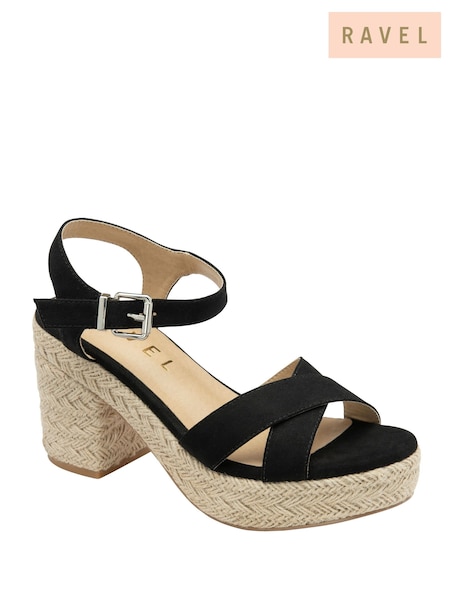 Ravel Black Peep-Toe Block-Heel Mule Sandals