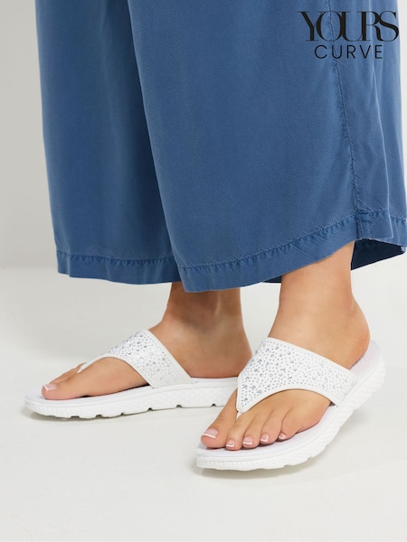 Yours Curve White E Wide Fit Diamante T-Bar Sandals
