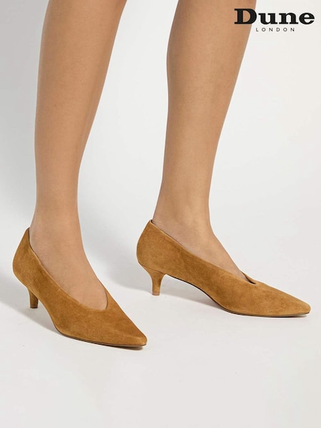 Dune London Dark Brown Regular Fit Celinna Set Back Kitten Slingback Suede Shoes