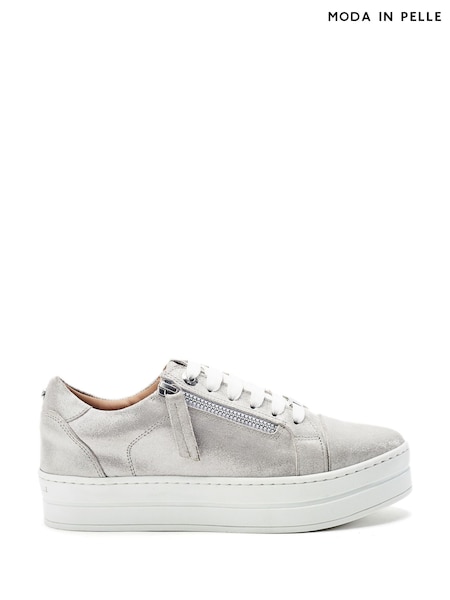 Moda in Pelle Silver Abbee Leather Slab Sole Lace Up Trainers With Zip