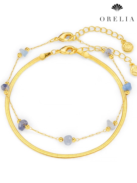 Orelia London Gold Tone Semi-Precious Sodalite Chip & Snake Chain 2-Row Bracelet