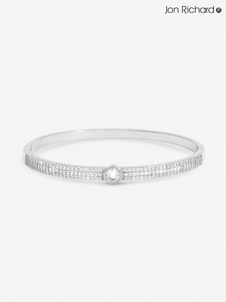 Jon Richard Silver Tone Crystal and Pave Stone Bangle
