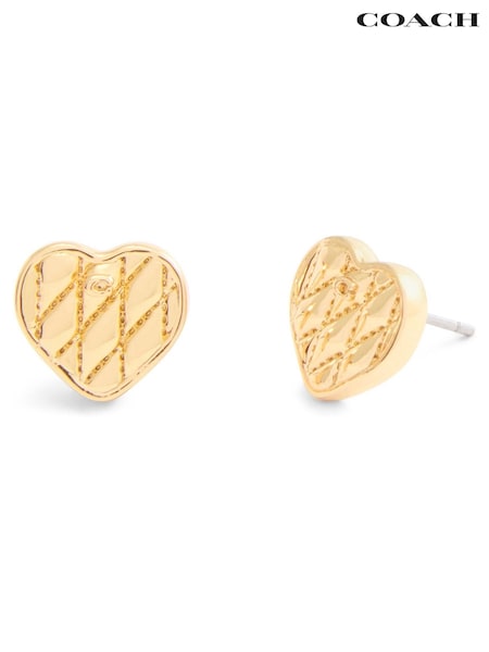 COACH Gold Tone Signature Quilted Heart Bag Stud Earrings