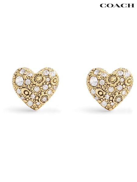 COACH Gold Signature C Pavé Heart Stud Boxed Earrings