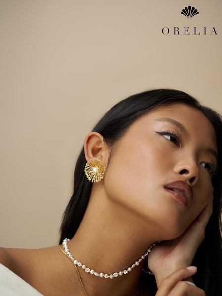 Orelia London Gold Tone Statement Flower & Pearl Earrings