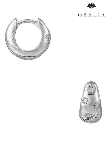 Orelia London Silver Tapered Crystal Starburst Huggie Hoop Earrings