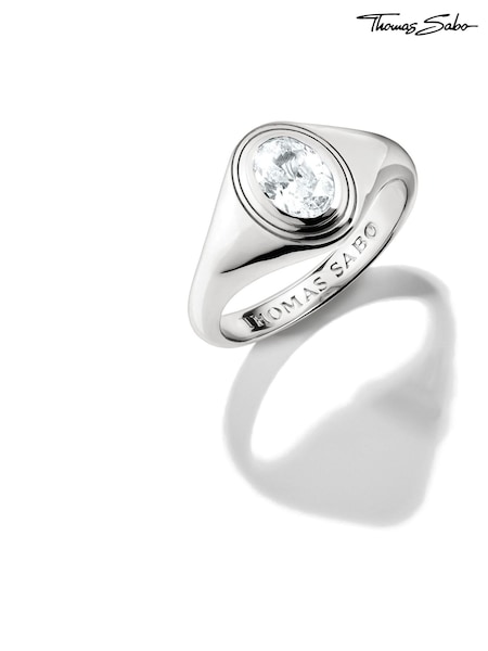 Thomas Sabo Silver Tone Bold Elegance Ring With Oval Zirconia Stone