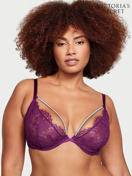 Victoria's Secret Frozen Plum Purple Lace Half Pad Plunge Bra