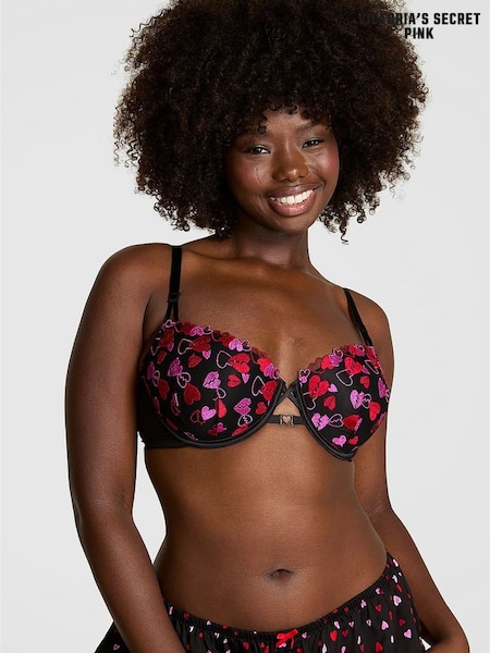 Victoria's Secret PINK Black Heart Print Non Wired Push Up Bra