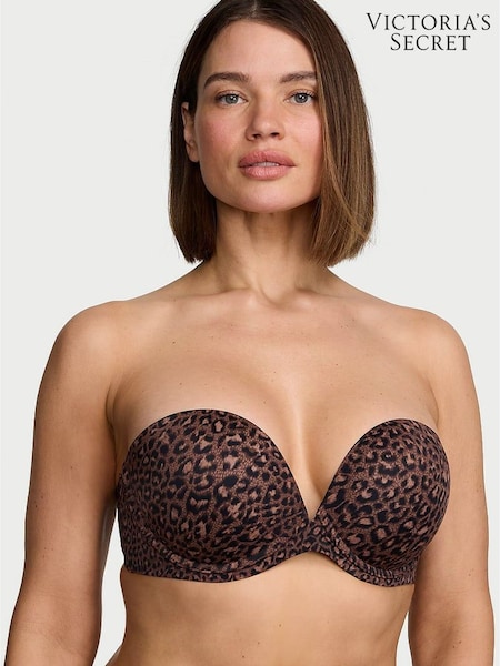 Victoria's Secret Leopard Brown Non Wired Push Up Strapless Bra