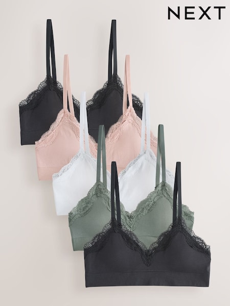 Black/Black/Black/Pink/White Seamfree Lace Trim Crop Bras 5 Pack