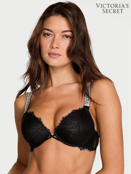 Victoria's Secret Black Push Up Shine Strap Lace Bra
