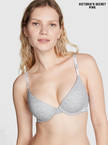 Victoria's Secret Pink Medium Heather Grey Push Up Logo Bra