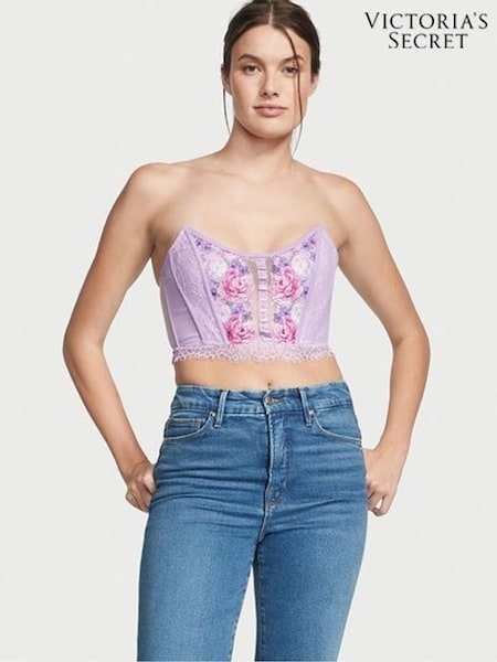 Victoria's Secret Jasmine Purple Embroidered Corset Strapless Corset Top