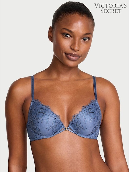 Victoria's Secret Denim Blue Rose Lightly Lined Demi Lace Bra