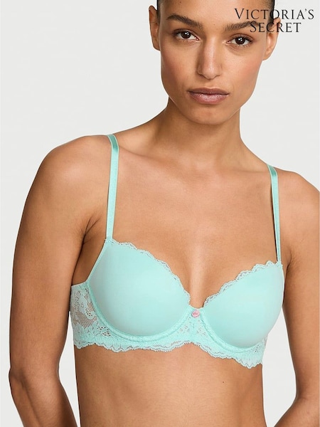Victoria's Secret Teal Haze Blue Lace Trim Lightly Lined Demi Bra