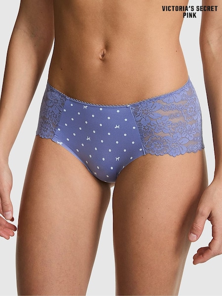 Victoria's Secret PINK Dusty Iris Blue Dog Print Hipster No Show Lace Trim Knicker