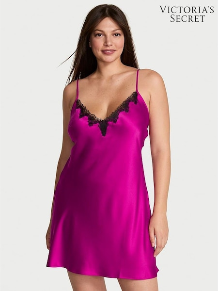Victoria's Secret Berrylicious Purple Satin Lace Trim Slip Dress