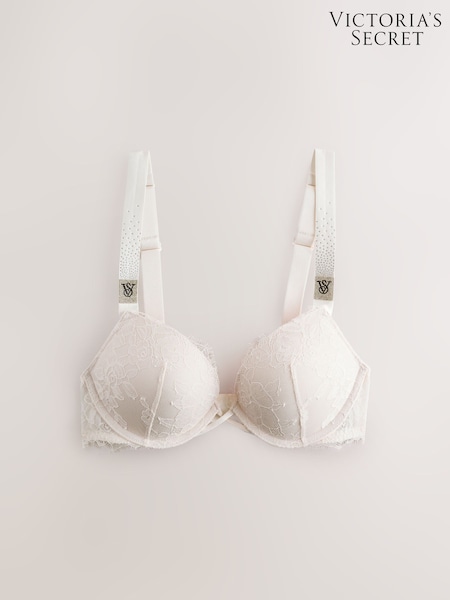 Victoria's Secret Coconut White Add 2 Cups Push Up Bombshell Scattered Shine Strap Lace Bra