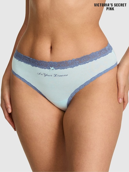Victoria's Secret PINK Spray Blue 'In Your Dreams' Cheeky Cotton Lace Trim Knickers