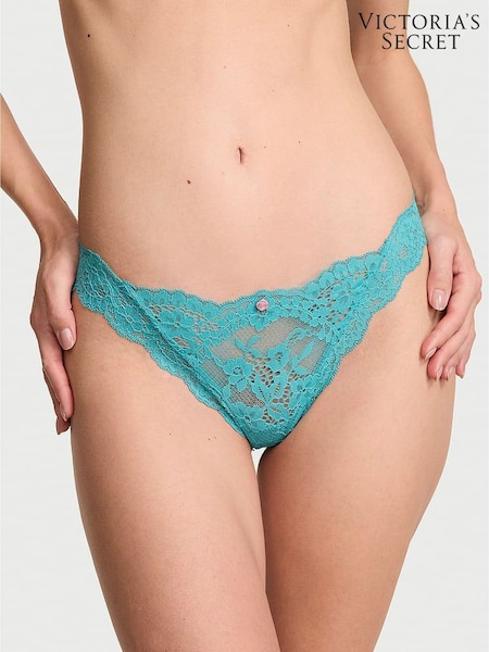 Victoria's Secret Canal Blue Lace Trim Thong Knickers