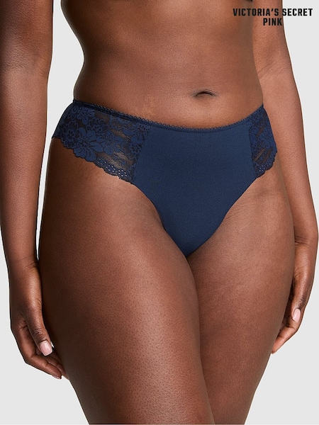 Victoria's Secret PINK Noir Navy Blue Thong No Show Lace Trim Knicker