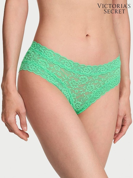 Victoria's Secret PINK Wild Green 'Wish Me Luck' Cheeky Cotton Lace Trim Knickers