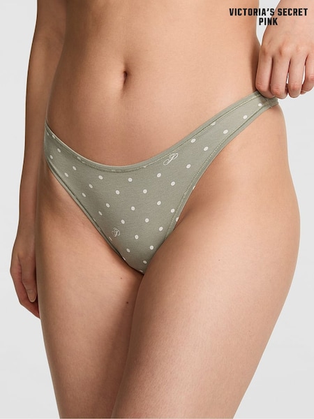Victoria's Secret Pink Slate Green Polka Dots Thong Cotton Knickers