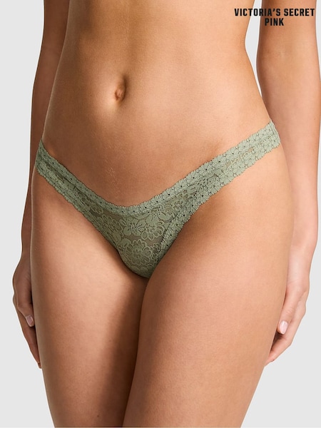 Victoria's Secret Faded Sage Lace Trim Thong Knickers