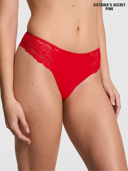 Victoria's Secret PINK Red Lacquer Thong No Show Lace Trim Knicker