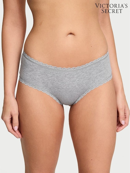 Victoria's Secret Heather Grey Cheeky Cotton Lace Trim Knickers