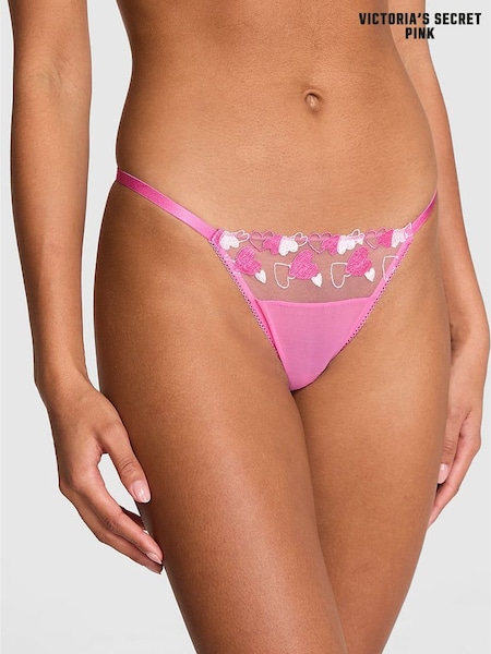 Victoria's Secret Pink Sweetheart Pink Mini Scoop Thong Embroidery Knickers