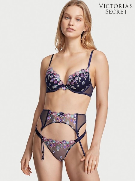 Victoria's Secret Noir Navy Blue Embroidered Suspenders